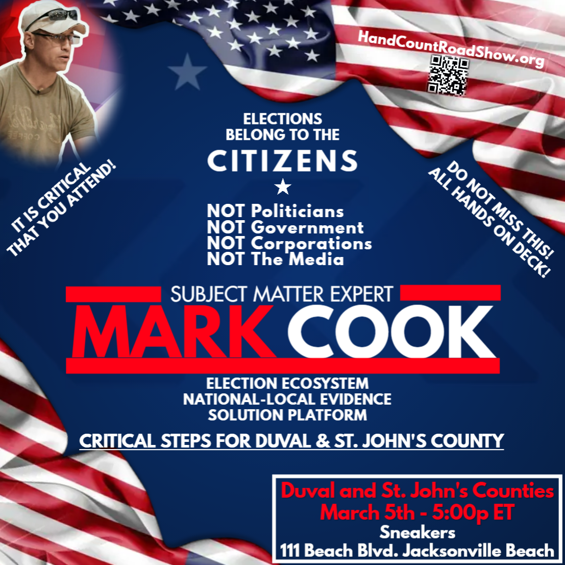 Mark founded the HandCountRoadShow.org and has devoted his life to traveling the country County by County bringing knowledge and realistic common sense solutions directly to his fellow citizens and officials.